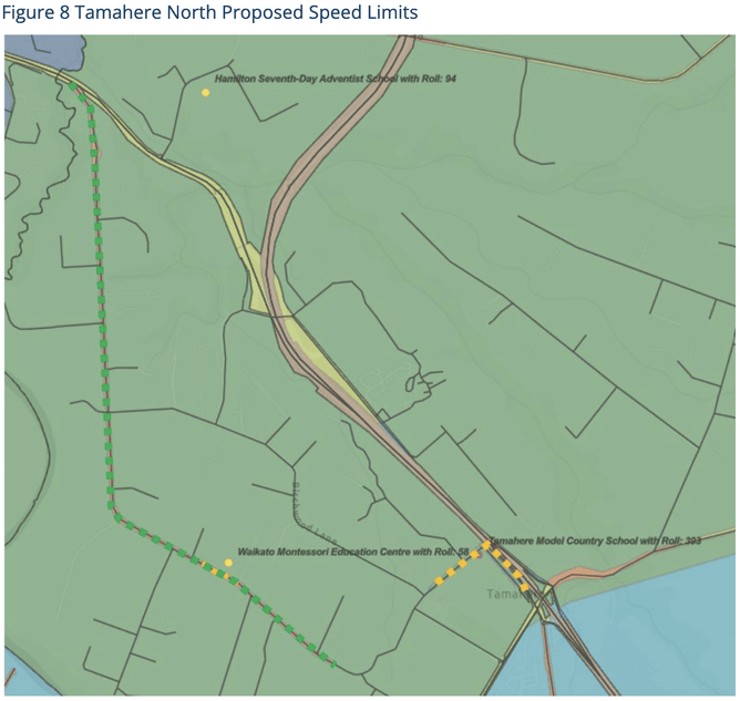 Since that time there has been a change to lower speed limits outside schools to 30km/r. As a result, it is recommended that the variable speed limit outside Tamahere Model Country School be lowered to 30km/hr and a 30km/hr variable speed limit be installed on Newell Road in the vicinity of Waikato Montessori Education Centre.