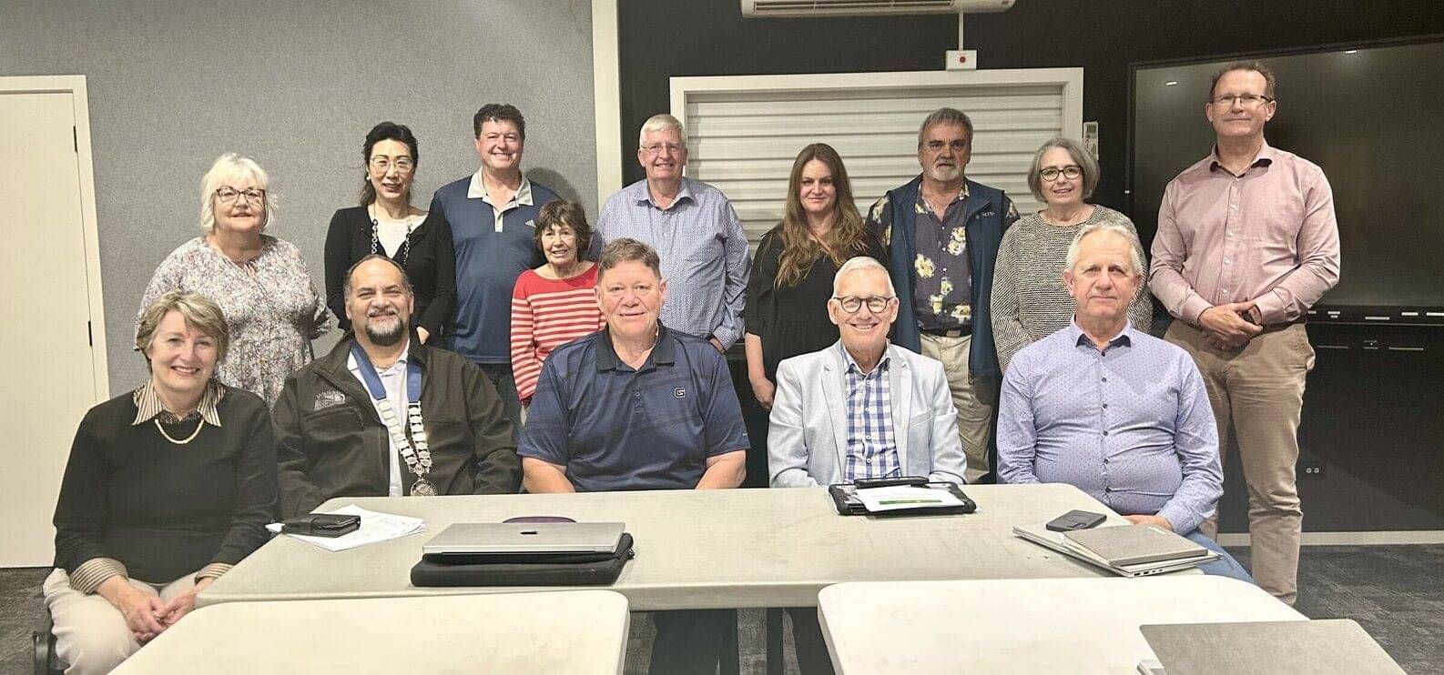 Back row: Sue Robertson (secretarial duties shared with returning member Lynn Harris, absent), Anne Cao-Oulton, Peter Mayall, Peter Nation, Lauren McLean, Mark Manson, Jane Manson (St Stephen’s Church rep), and Geoff King (WDC liaison).