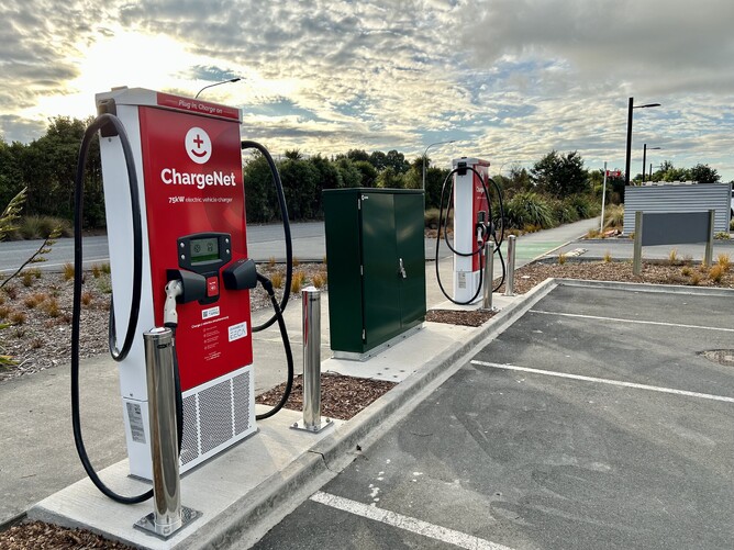 The new charging station is a collaboration between the Waikato District Council and ChargeNet. Located opposite the playground and skatepark, it features two 75kW charging stations, providing four charging points.