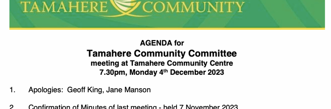 Once again a full agenda of items before the Tamahere Community Committe's December meeting starting at 7.30pm in the Tamahere Community Centre Monday 4th of December.Full agenda download below....